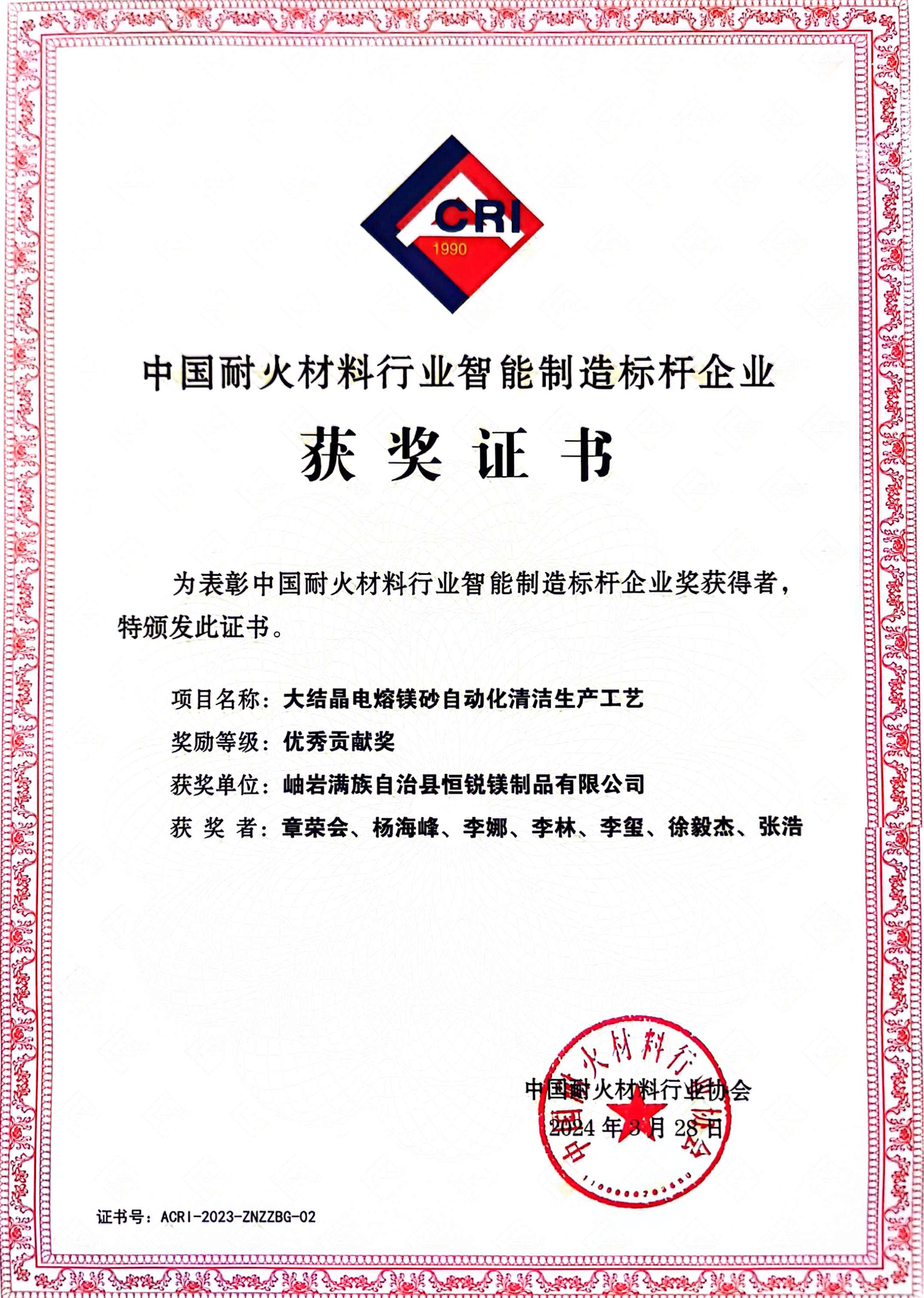 中國(guó)耐火材料行業(yè)智能制造標(biāo)桿企業(yè)(優(yōu)秀貢獻(xiàn)獎(jiǎng))
